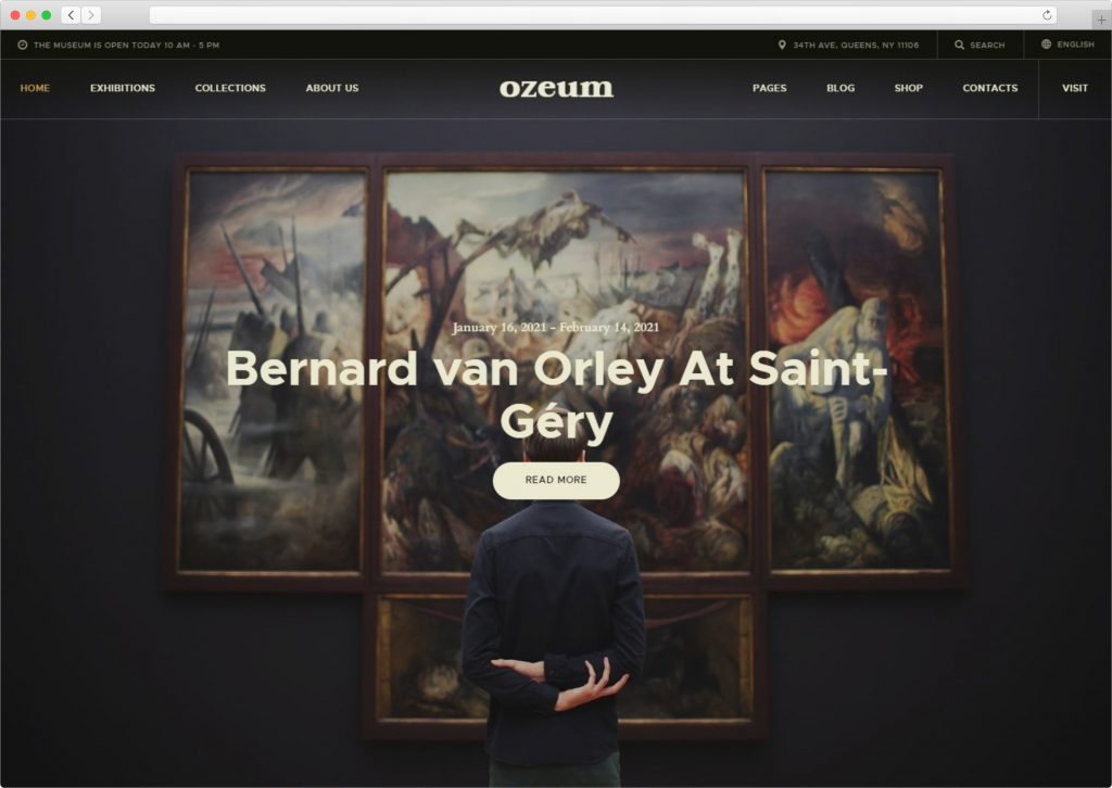 This theme is Ozeum, WordPress Theme for Museums and Art Galleries and it is a delightful Art Gallery, Museum theme that provides countless nice, cutting-edge and advantageous looks so you can create a strong Art Gallery, Museum website for anything.